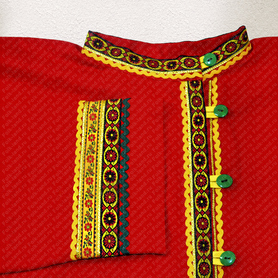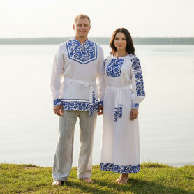 Косоворотка "Православная" выполнена из белого льна с соблюдением славянских традиций. Косоворотку украшает геометрический русский орнамент красно-белого цвета. Используется жаккардовая тесьма. Планка на груди, полики, пояс (кушак) выполнены в красном цвете. Косоворотка смотрится торжественно, из-за чего ее часто покупают для православных и праздничных мероприятий.