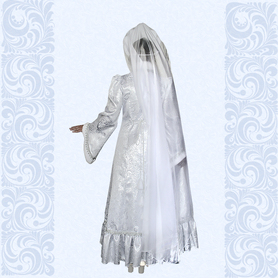 - украшенная искусственным мехом по манжетам и по горловине накидка, выполнена из платочной ткани;