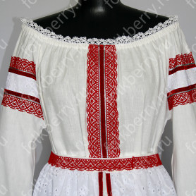 - юбка-колокол из плотного габардина с цветным кружевом по подолу.
