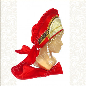 Костюм выполнен из габардина и красиво подобранного декора в золотистых цветах. Достоинства габардина в том, что он не мнется, не блестит, как атлас, ложится красивыми мягкими складками, цвет не выгорает. Юбка с оборкой, декор в золотистых цветах, по талии на двойной резинке. Блуза белого праздничного цвета, с баской, рукава расширены внизу, с манжетами. Сзади на блузе шнуровка. Она дает хорошую посадку по фигуре. Костюм предназначен для творческих сольных и коллективных театральных выступлений.