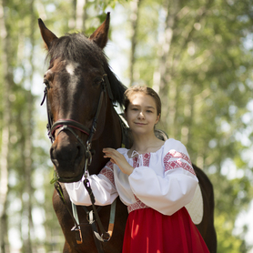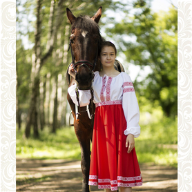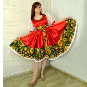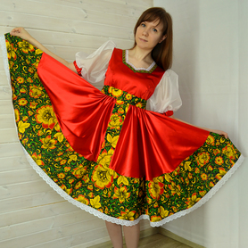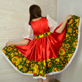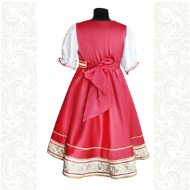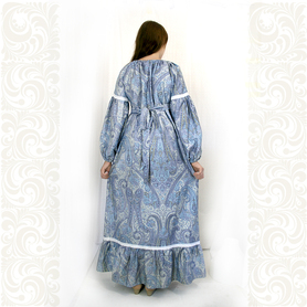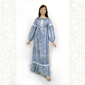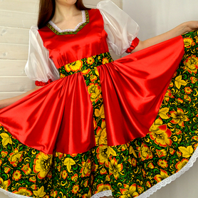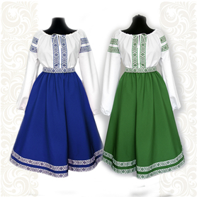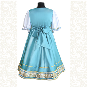 Платье «Гжель», выполненное в благородных оттенках синего цвета удачный наряд для любого праздника. Благодаря продуманному дизайну и качественному исполнению, модель идеально подходит для участниц танцевальных, хоровых и народных коллективов.