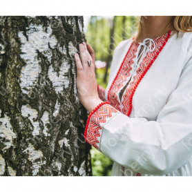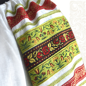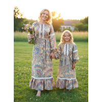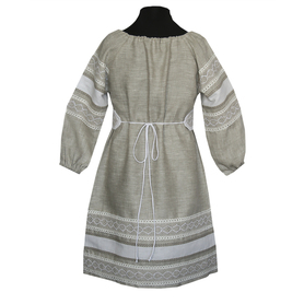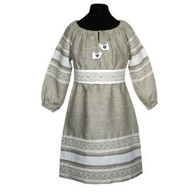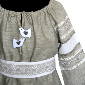 Платье сшито из натурального, умягченного льна с рисунком «Гжель».