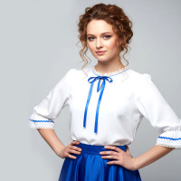Юбка сшита из габардина, украшена тесьмой из жаккарда, а также кружевом и тесьмой «вьюнок».
