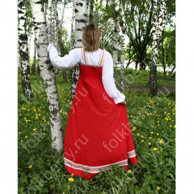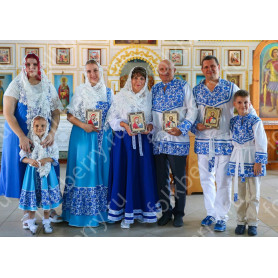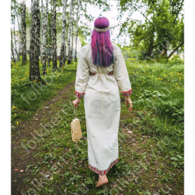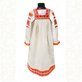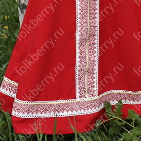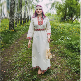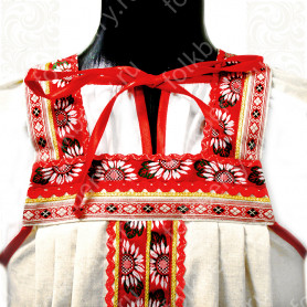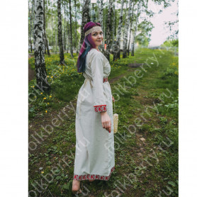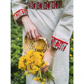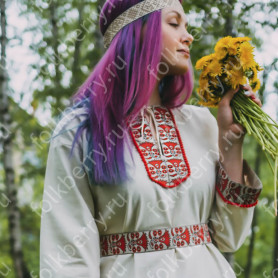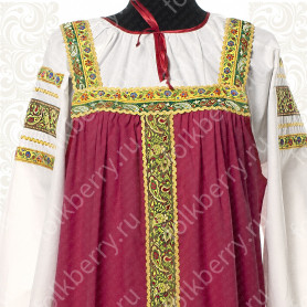 Материал: лен – 70%, хлопок – 30%. Ткань отличается хорошей плотностью, качеством, красивым цветом. Возможен комбинированный вариант, дополненный другим цветом и машинной вышивкой.