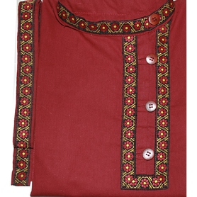 Натуральная ткань, свободный силуэт, отсутствие жесткого воротника, втачной длинный рукав, пояс в комплекте, небольшие разрезы по боковым швам внизу делают рубаху комфортной и удобной.