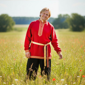 Данная модель привлекает внимание сочным бордовым цветом и благородным, тканным орнаментом на груди. Рубаха «Молодецкая» выполнена из натурального, плотного, умягченного льна. Хороший, оригинальный подарок важному для Вас человеку. В комплекте имеется пояс. По индивидуальному заказу можно подобрать порты.