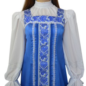 Костюм «Жар-Птица», состоящий из сарафана с блузой, выполнен в традиционном славянском стиле, предназначен для театральных и концертных выступлений, славянских праздников и тематических мероприятий.